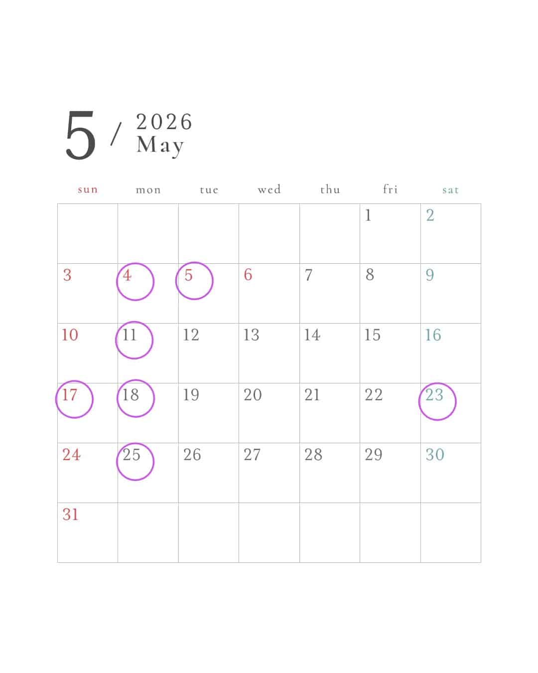 5月の営業のご案内です✨✨️✨️✨️✨️